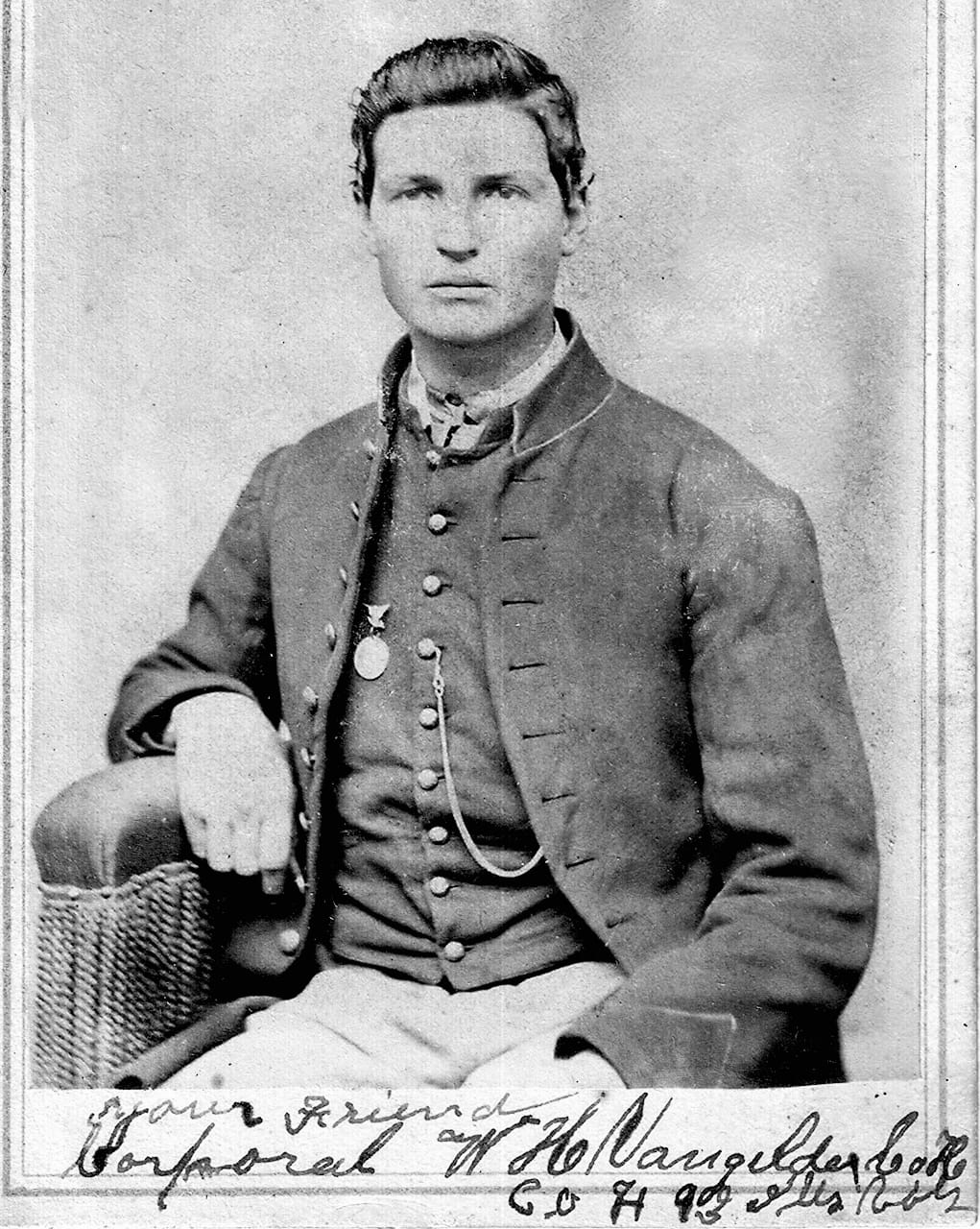 I have an original photograph of William Vangilder sent by him to my great-great grand father. They were comrades-in-arms in Company H. The photograph has been passed down through my family without its story, but it does have a friendly inscription that identifies the subject. I've made use of contemporary sources to piece together a little of the story of the man and the events of the soldier's life he shared with my ancestor.